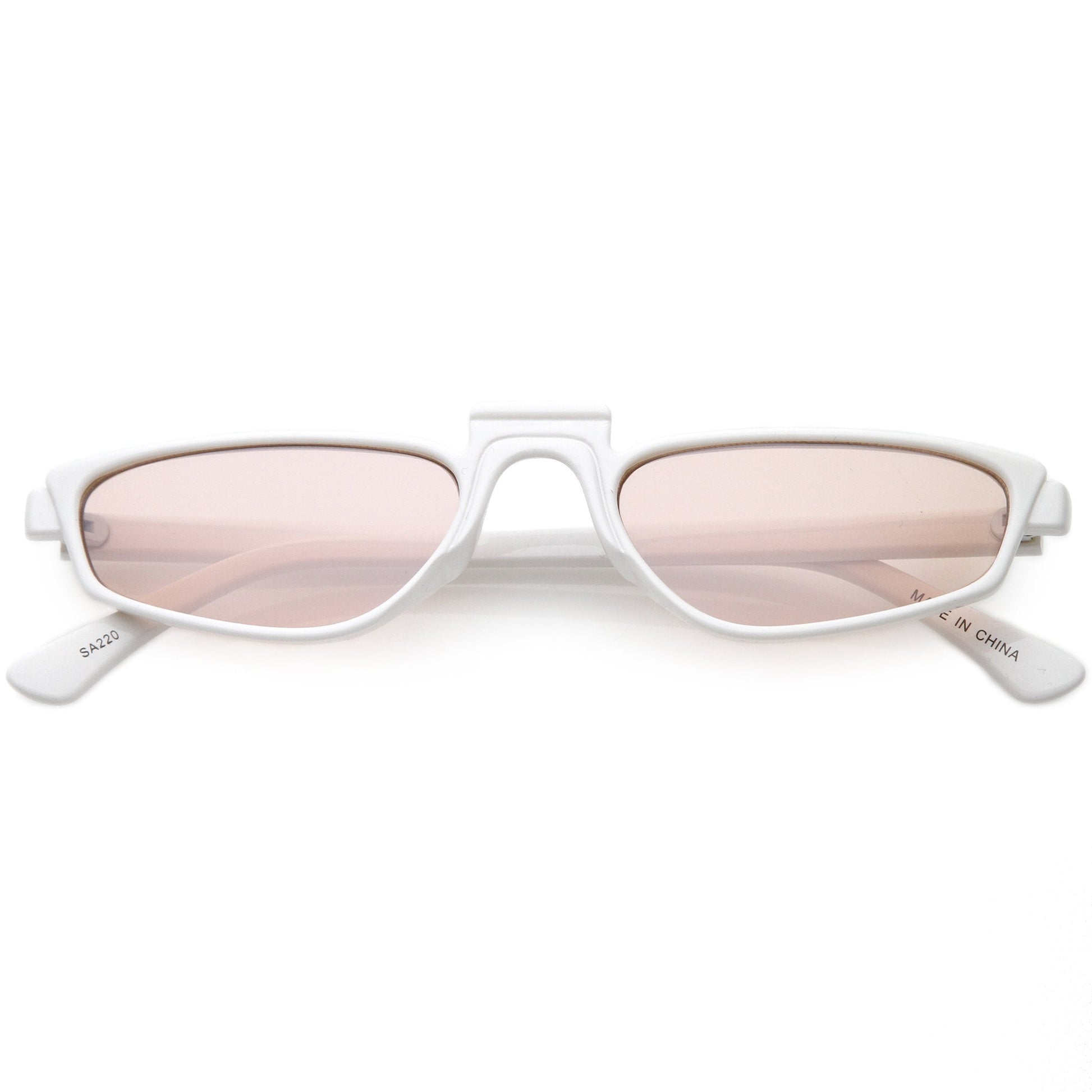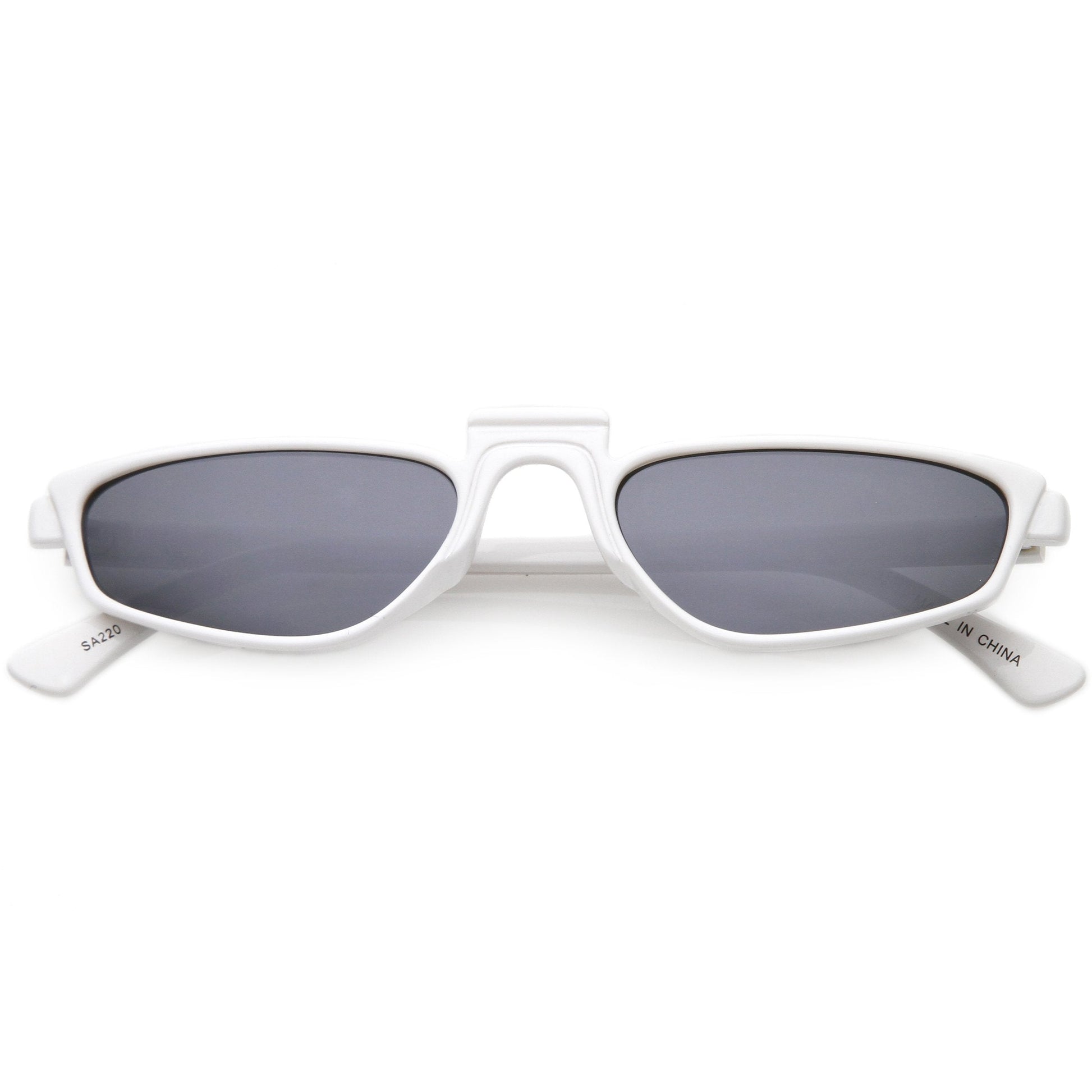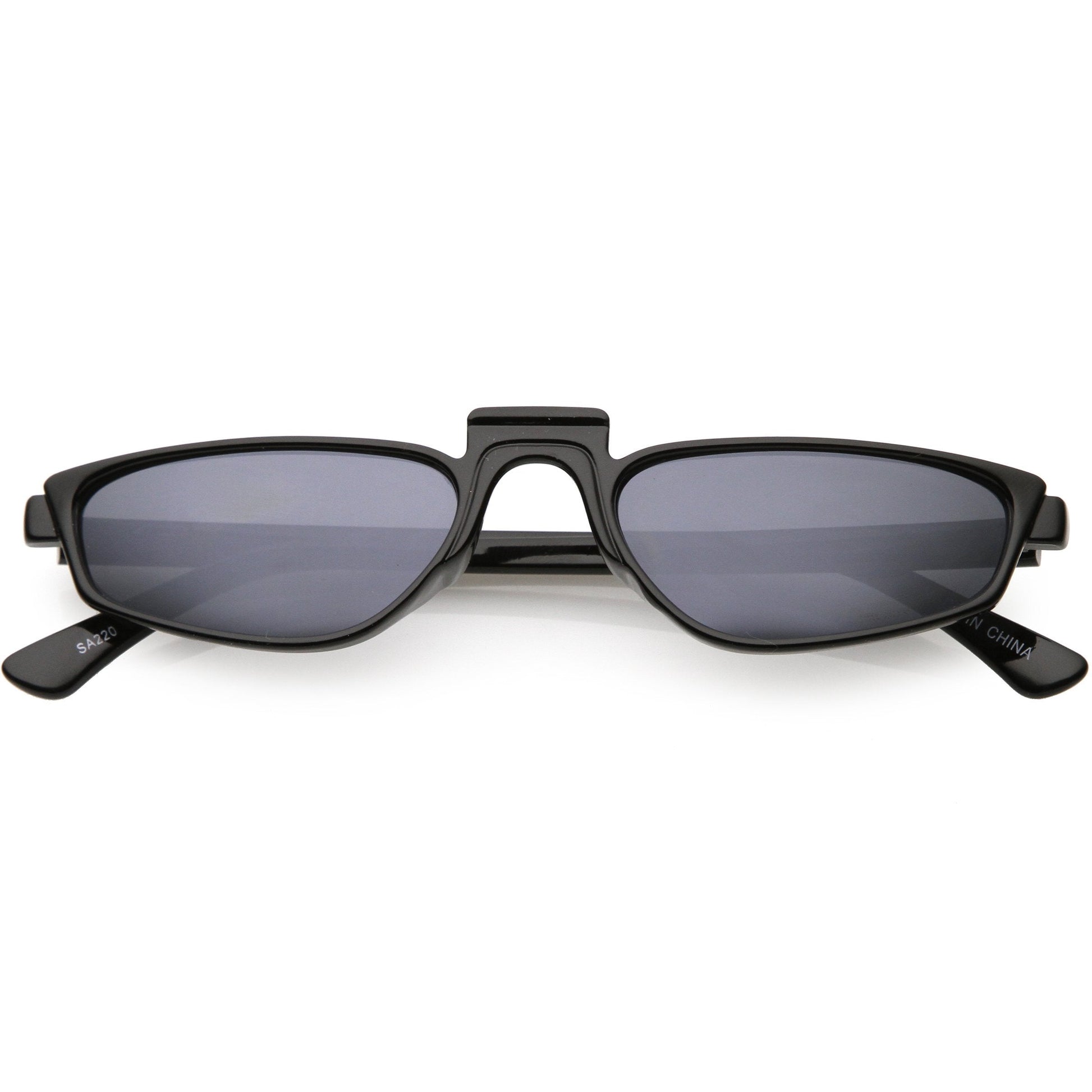 - Futuristic sunglasses designed with a geometric rectangle frame and a unique square raised nose bridge. Featuring colored tinted and neutral colored lenses for a variety of looks and slim arms for a sleek design, these geometric rectangle sunglasses are a must-have this festival season. Made with a plastic based frame, reinforced metal hinges, and 100% UV protected lenses.